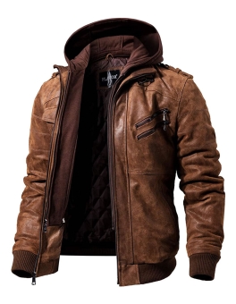 - FLAVOR Men Brown Leather Motorcycle Jacket with Re....